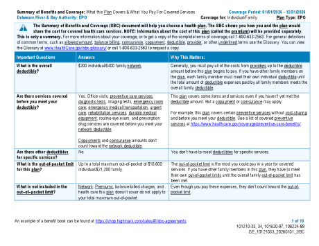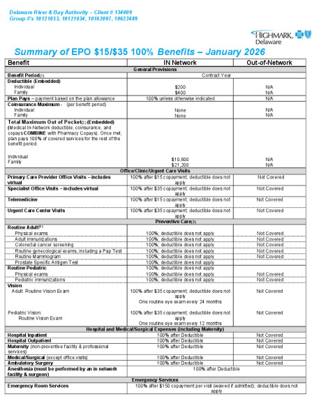 The Authority offers three (3) health plan options including medical and prescription drug benefits. The medical portion of the plan is administered by Highmark Delaware.